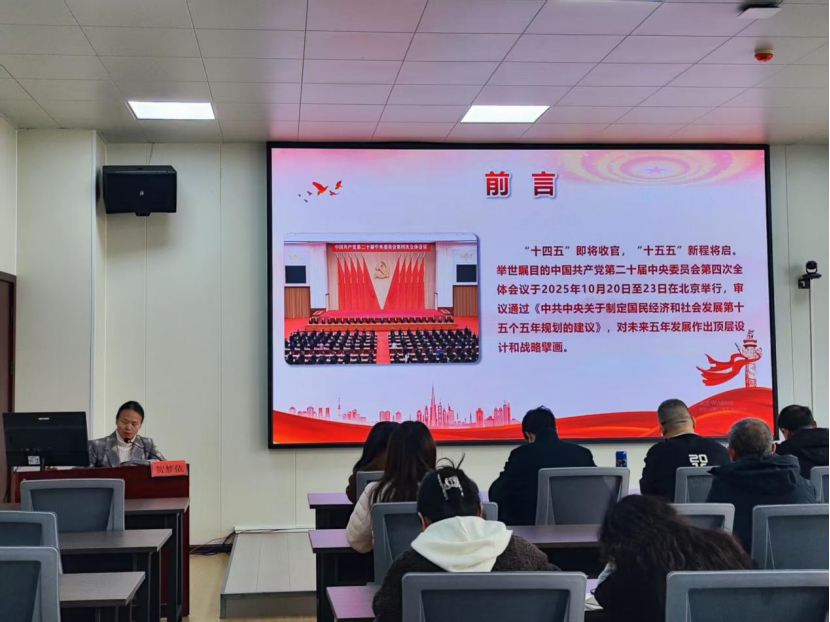 宣讲重点围绕“十四五”时期我国发展取得的重大成就、“十五五”时期经济社会发展的指导思想、“十五五”时期经济社会发展的主要目标、“十五五”时期经济社会发展必须遵循的原则、“十五五”时期经济社会发展的重要部署等内容。从充分认识中国式现代化推进强国建设,切实加强党的全面领导续写中国式现代化的新篇章,系统梳理和深入解读全会提出的新思想、新任务、新部署。最后,贺校长指出,各部门要自觉把思想和行动统一到全会决策部署上来,紧密结合学校“十五五”发展规划,立足各部门工作实际,系统谋划、扎实推进,确保各项部署要求落地见效。