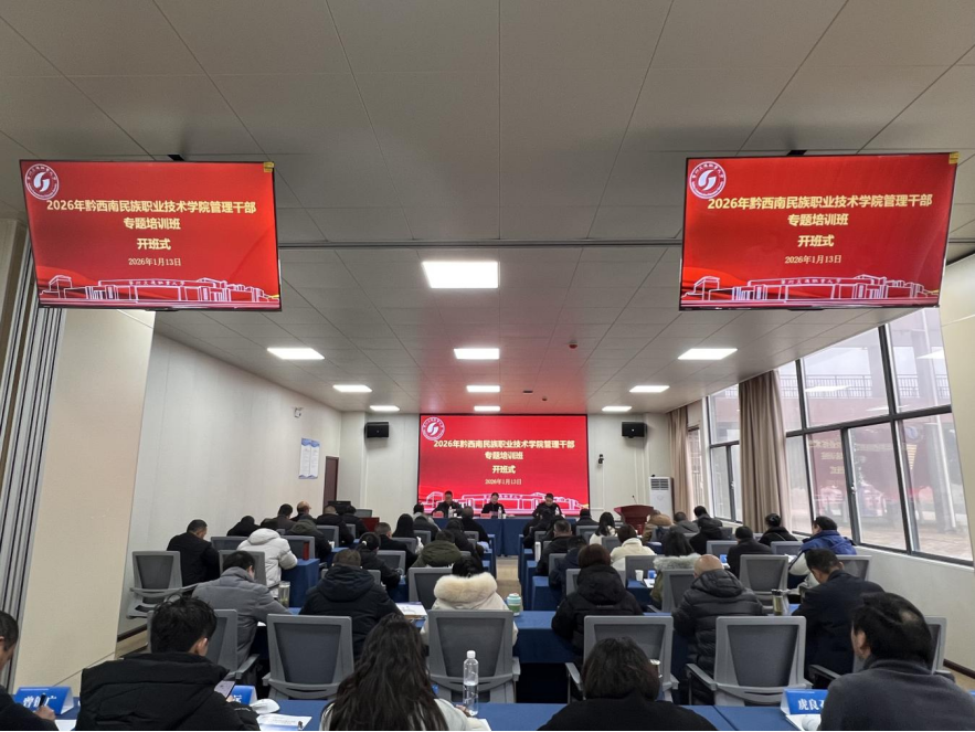1月13日,2026年黔西南民族职业技术学院管理干部专题培训班在贵州交通职业大学开班。学校党委委员、副校长贺梦依,黔西南民族职业技术学院党委副书记张丙乾出席。贵州交通职业大学继续教育学院副院长龙茂兴主持开班式。